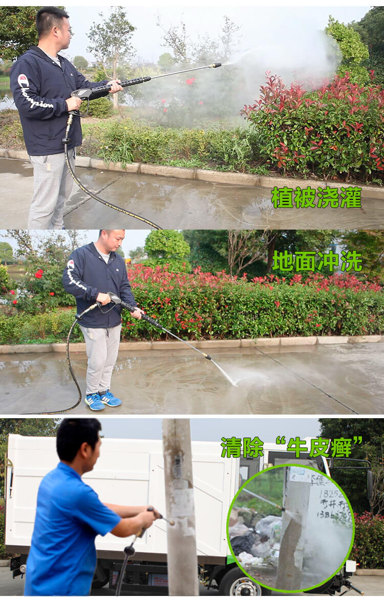 l 后置手動高壓噴槍,高端15米長卷盤管配套高壓水槍,操作方便簡易且省時省力,作業(yè)范圍大,輕松清理集中污漬和街邊小廣告。